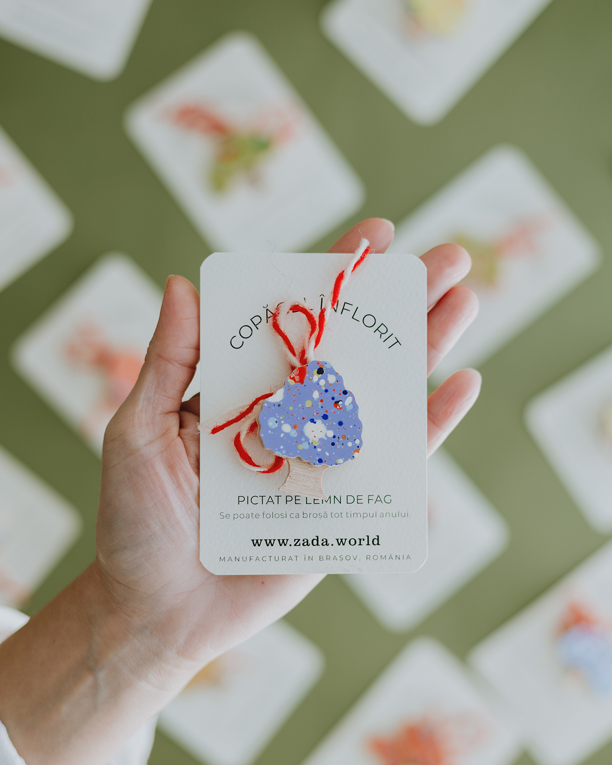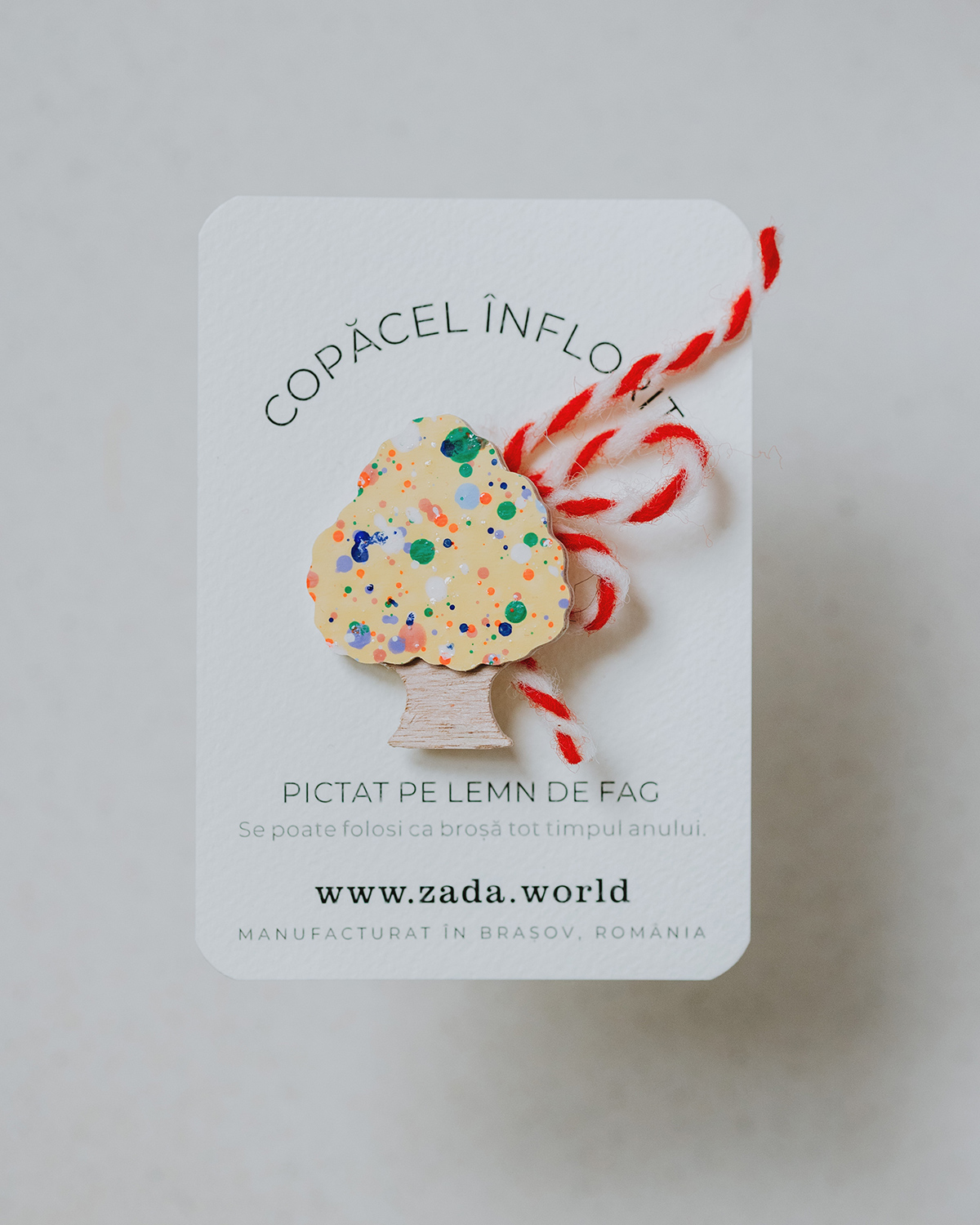 Fiecare copăcel are pictura unică, prin urmare densitatea, mărimea și culorile punctulețelor pot varia față de cele prezentate în imagini.