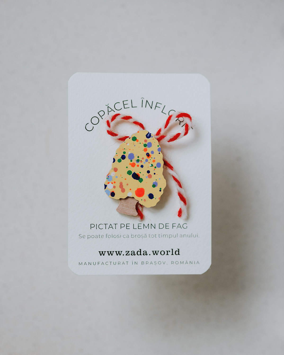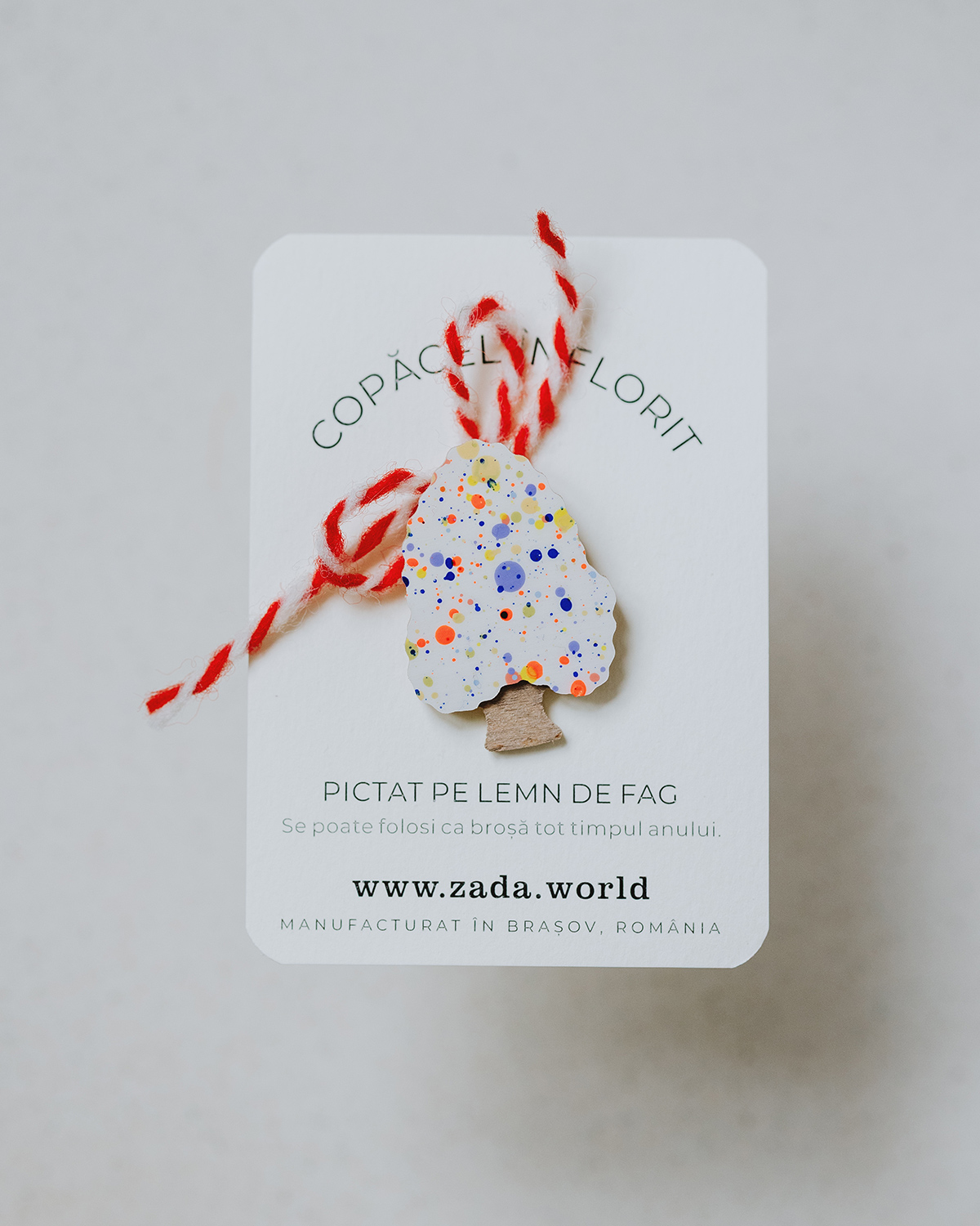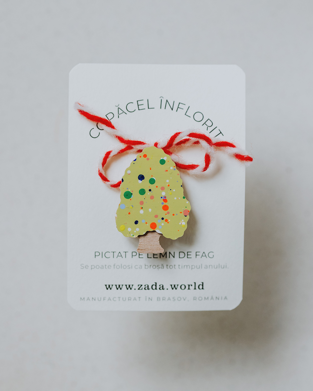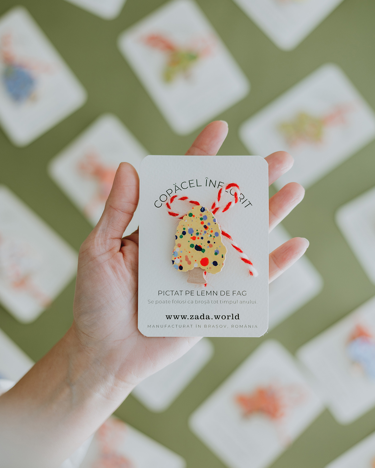 Fiecare copăcel are pictura unică, prin urmare densitatea, mărimea și culorile punctulețelor pot varia față de cele prezentate în imagini.
