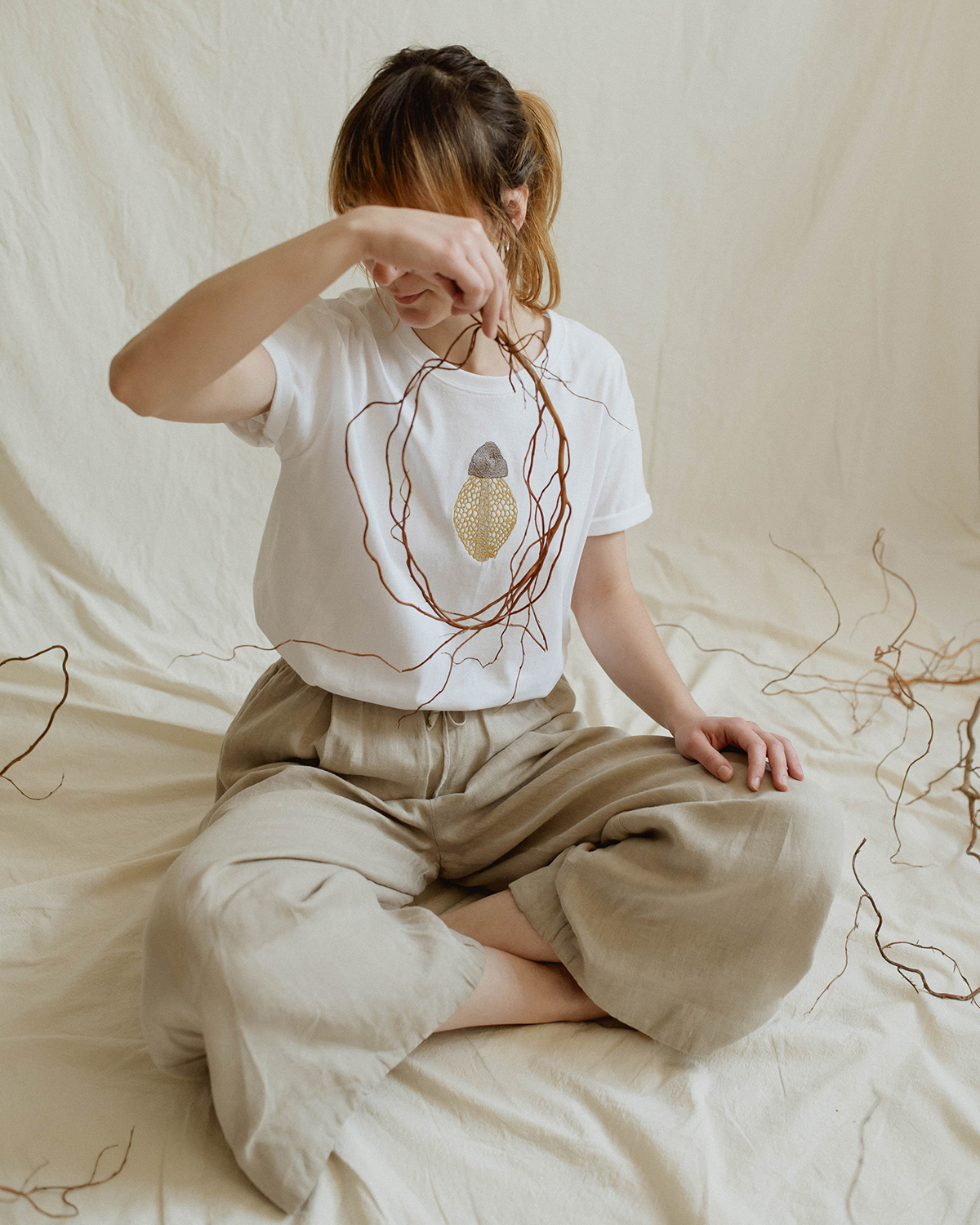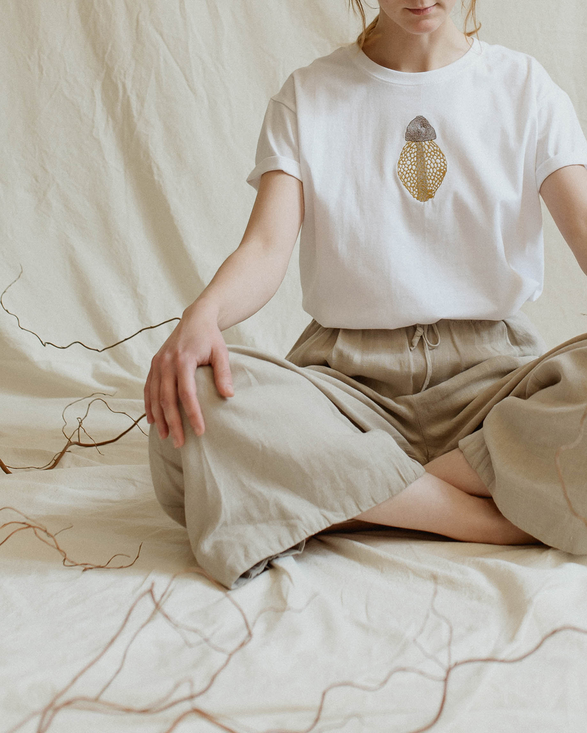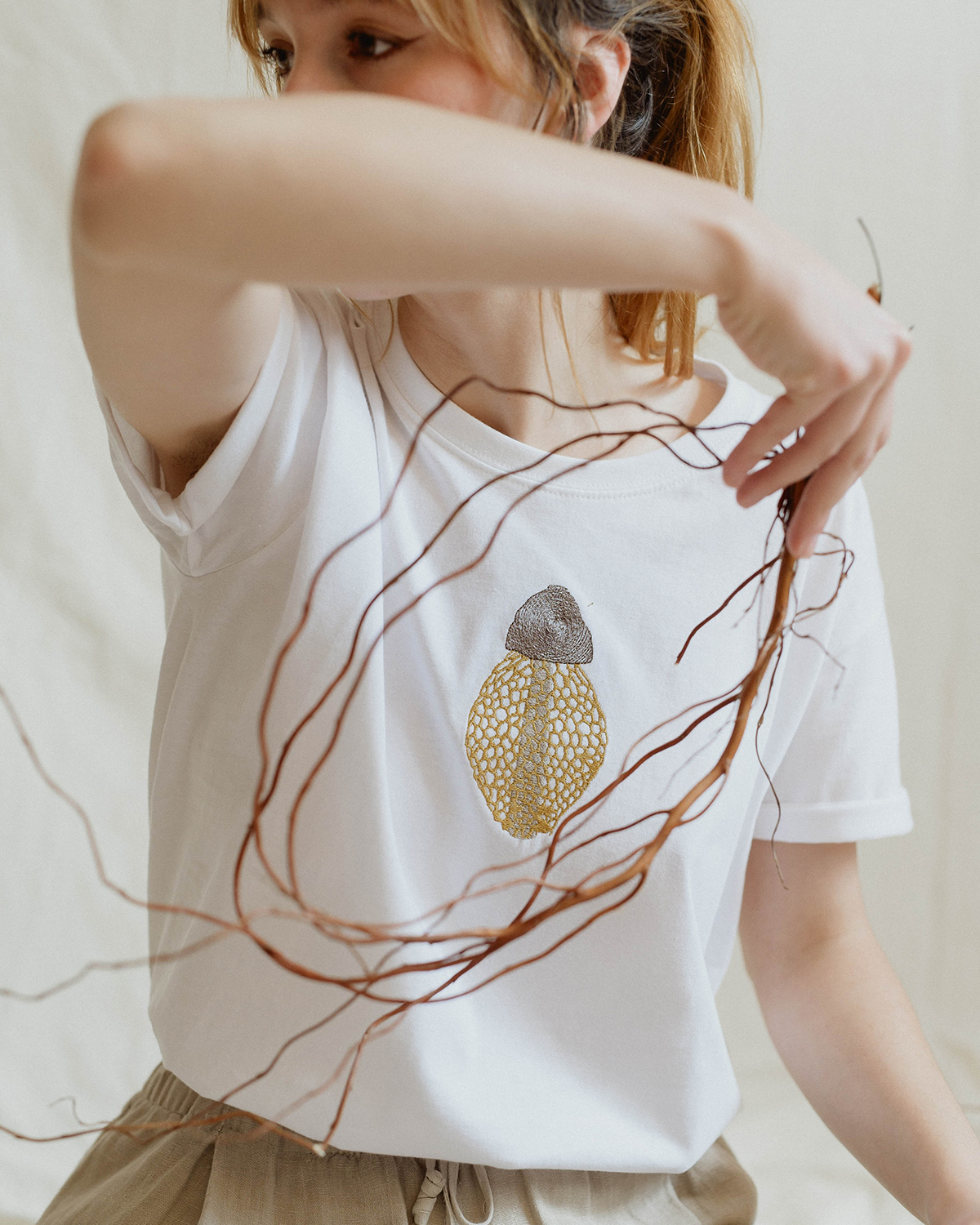 O piesă vestimentară albă, curată, cu broderii botanice care aduc un accent natural în garderobă. Tricourile sunt unisex și disponibile în două croiuri: crop top și clasic, ambele gândite să stea lejer pe corp.