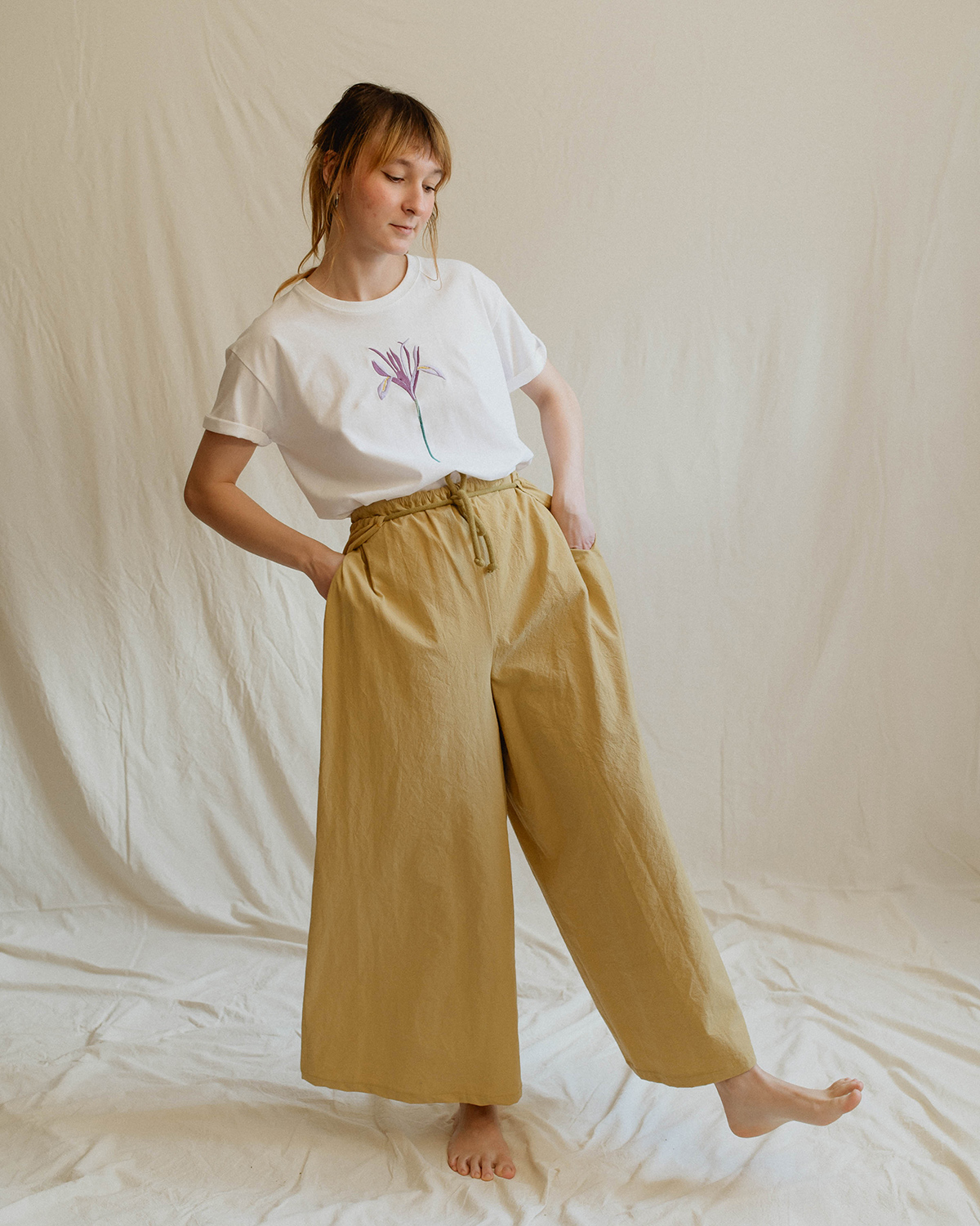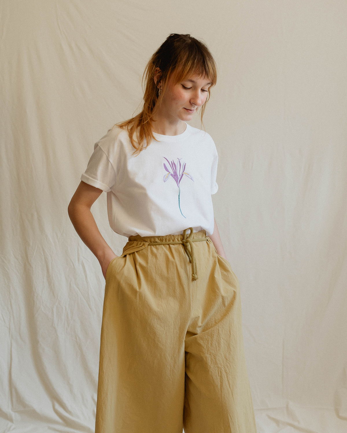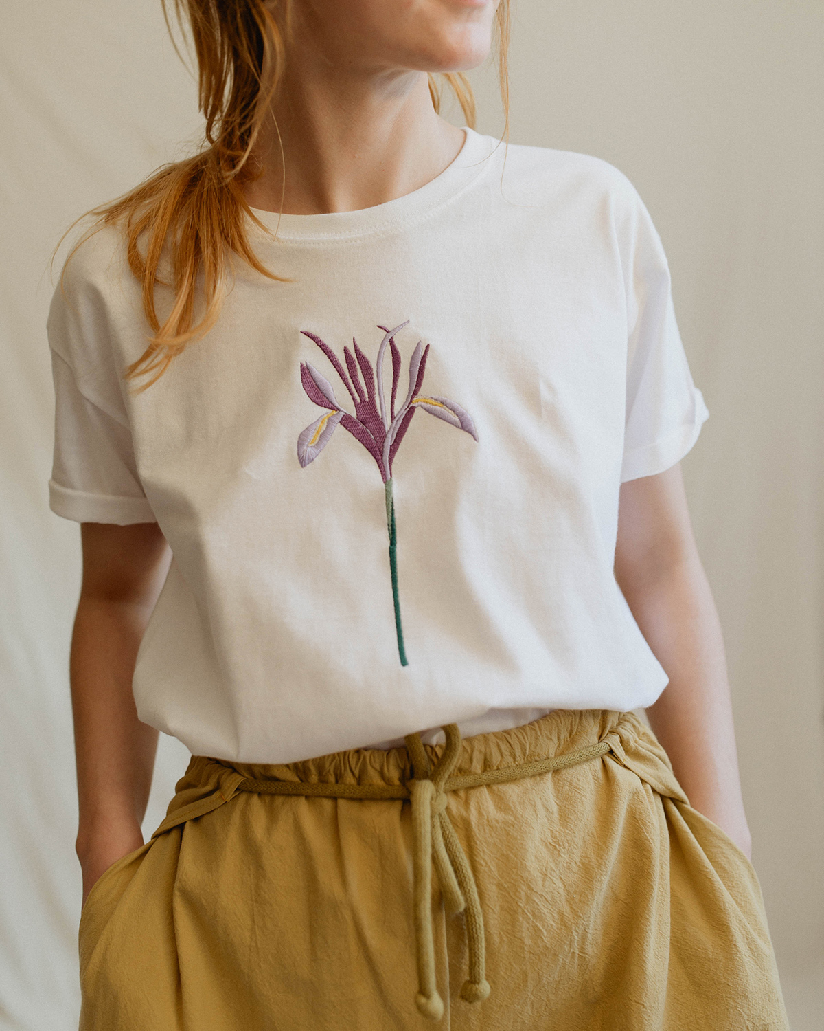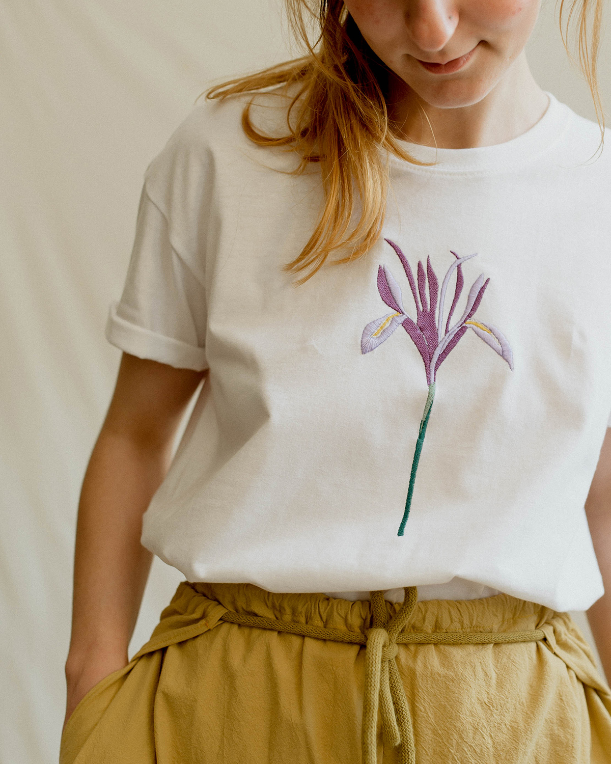 O piesă vestimentară albă, curată, cu broderii botanice care aduc un accent natural în garderobă. Tricourile sunt unisex și disponibile în două croiuri: crop top și clasic, ambele gândite să stea lejer pe corp.