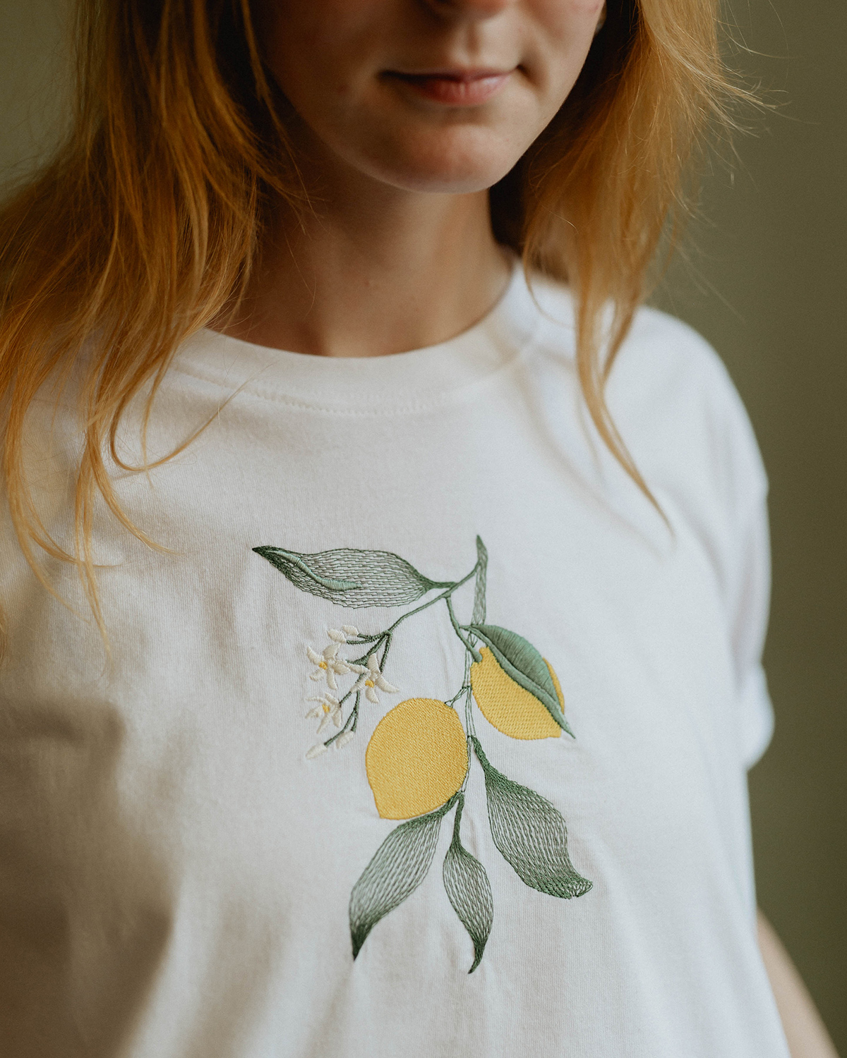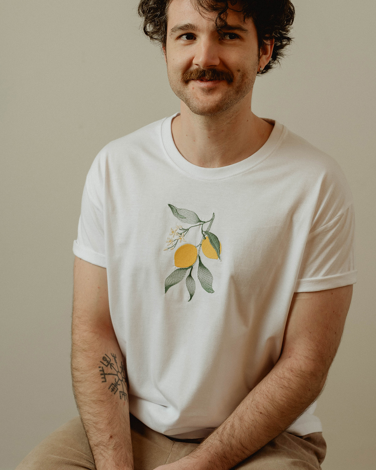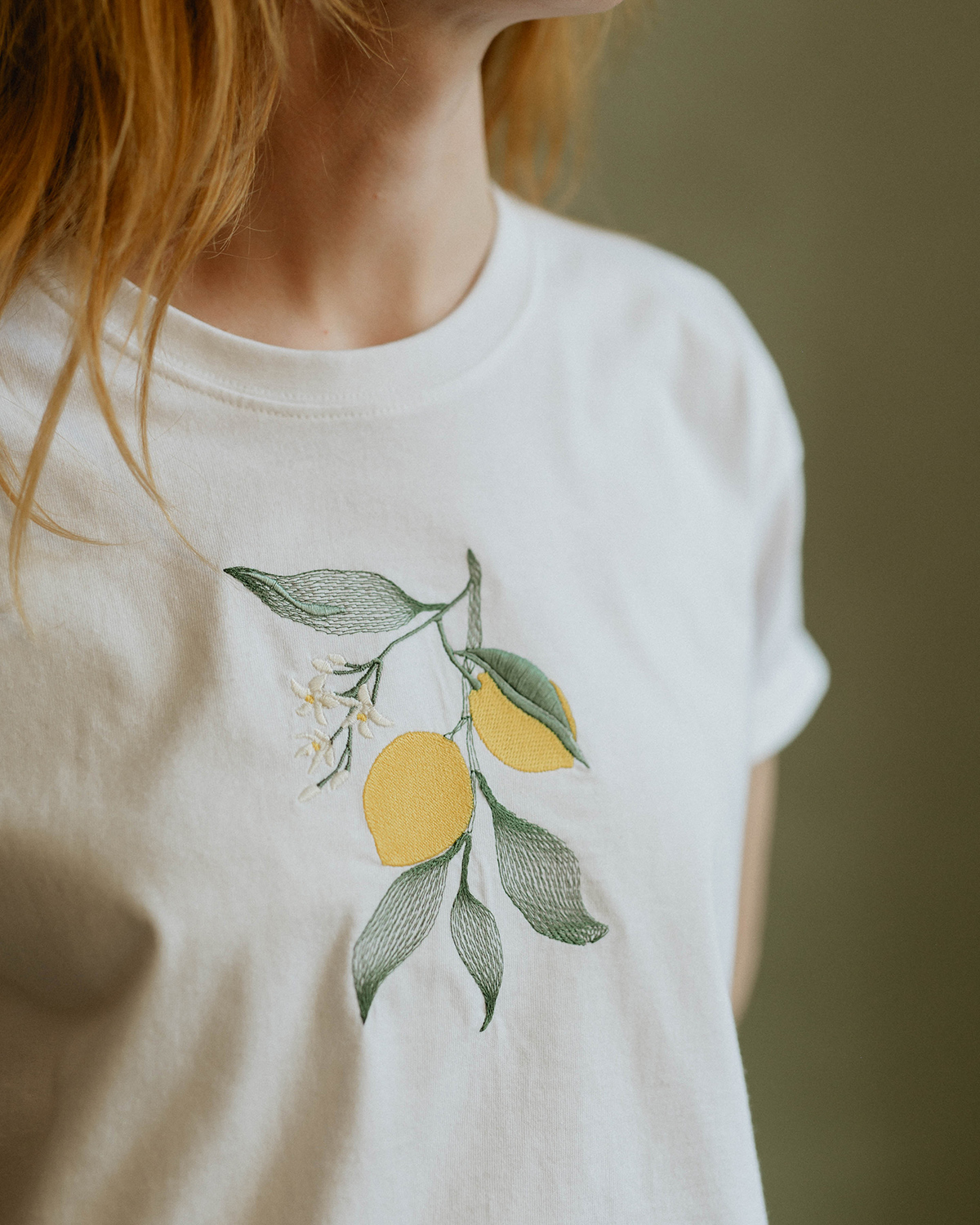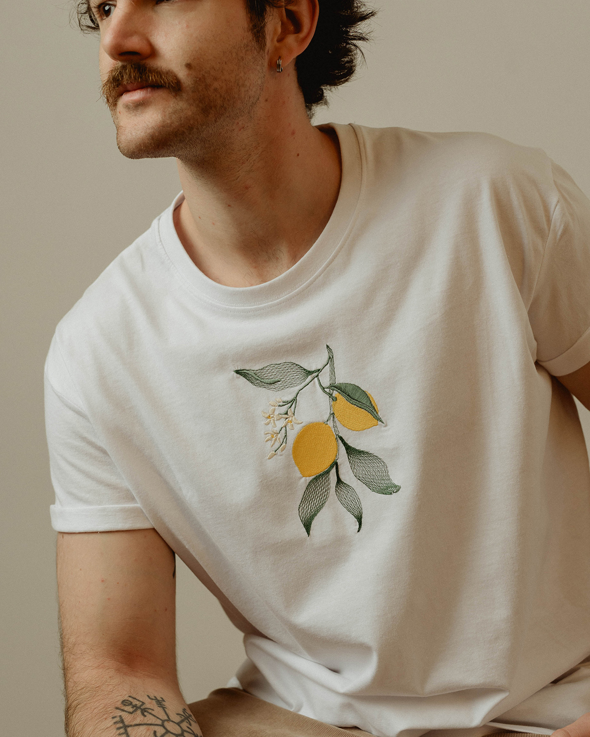 Tricou unisex din bumbac 100%, brodat cu Lămâi, cu mâneci cusute.