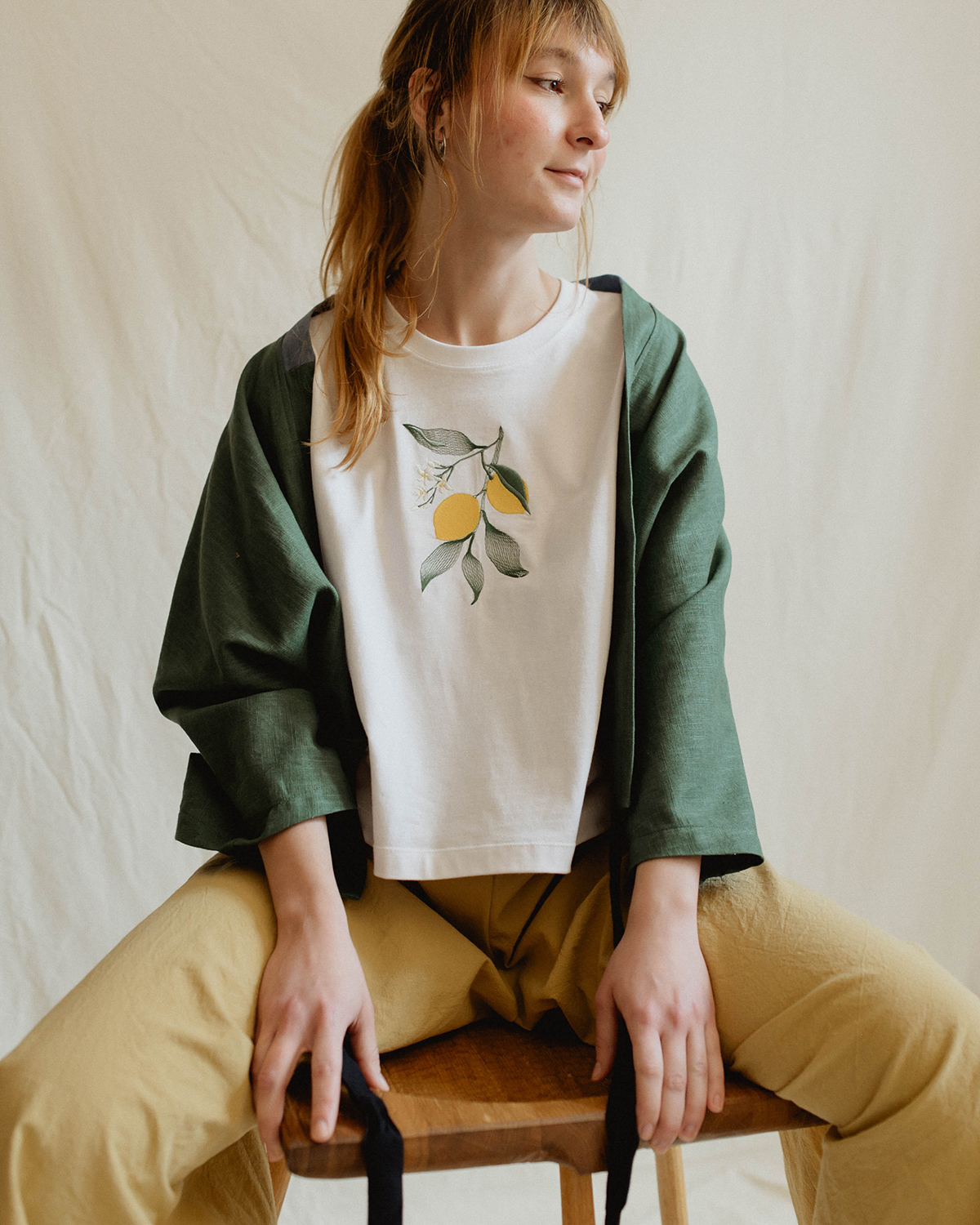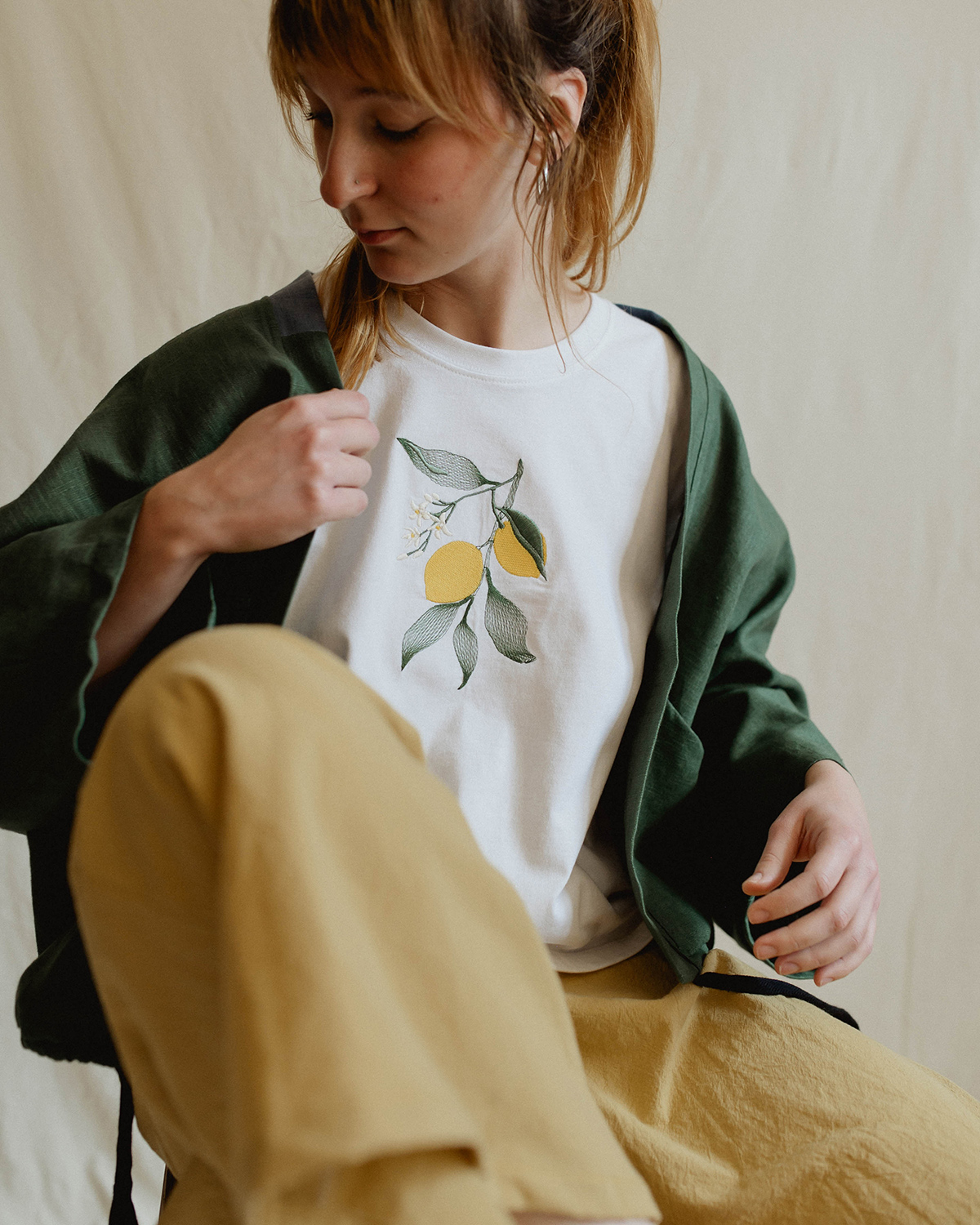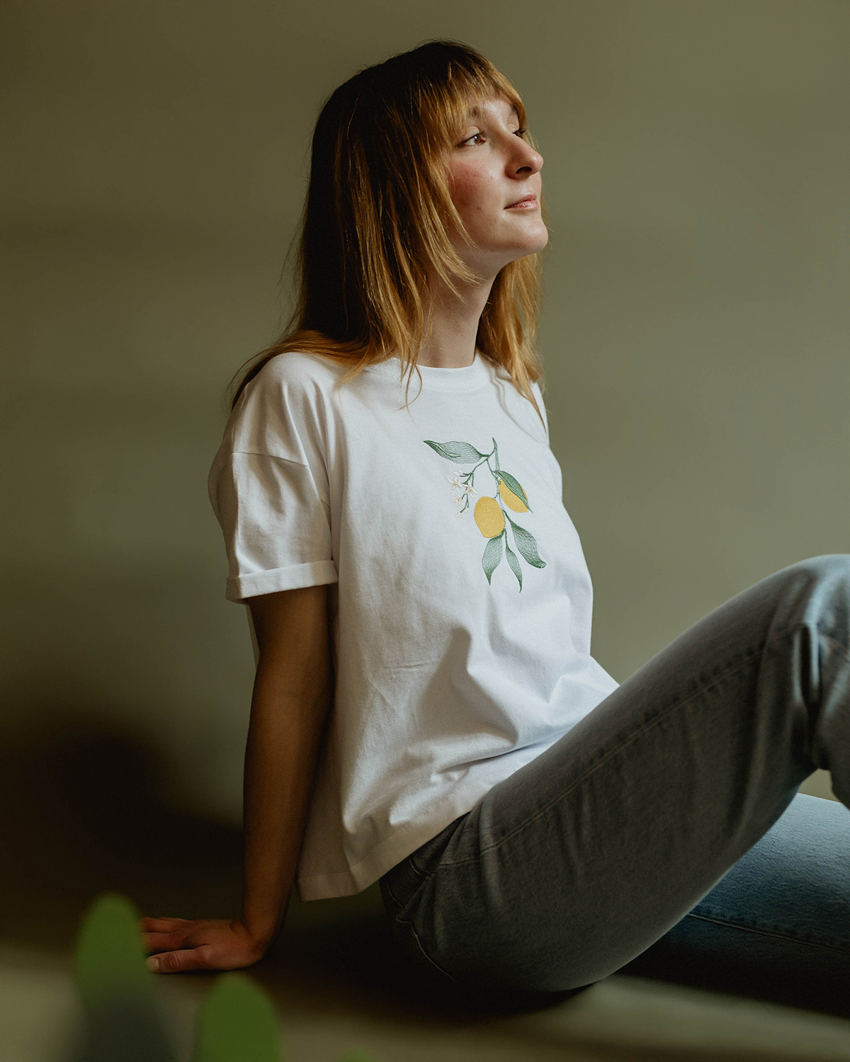 O piesă vestimentară albă, curată, cu broderii botanice care aduc un accent natural în garderobă. Tricourile sunt unisex și disponibile în două croiuri: crop top și clasic, ambele gândite să stea lejer pe corp.