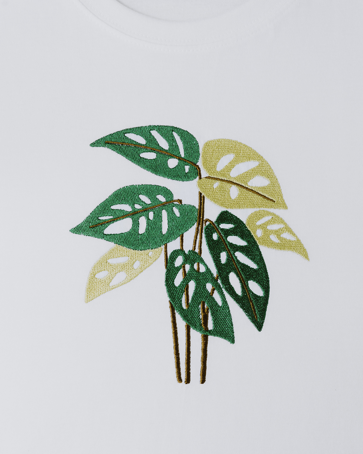 Tricou unisex din bumbac 100%, brodat cu Monstera Adansonii, cu mâneci cusute.