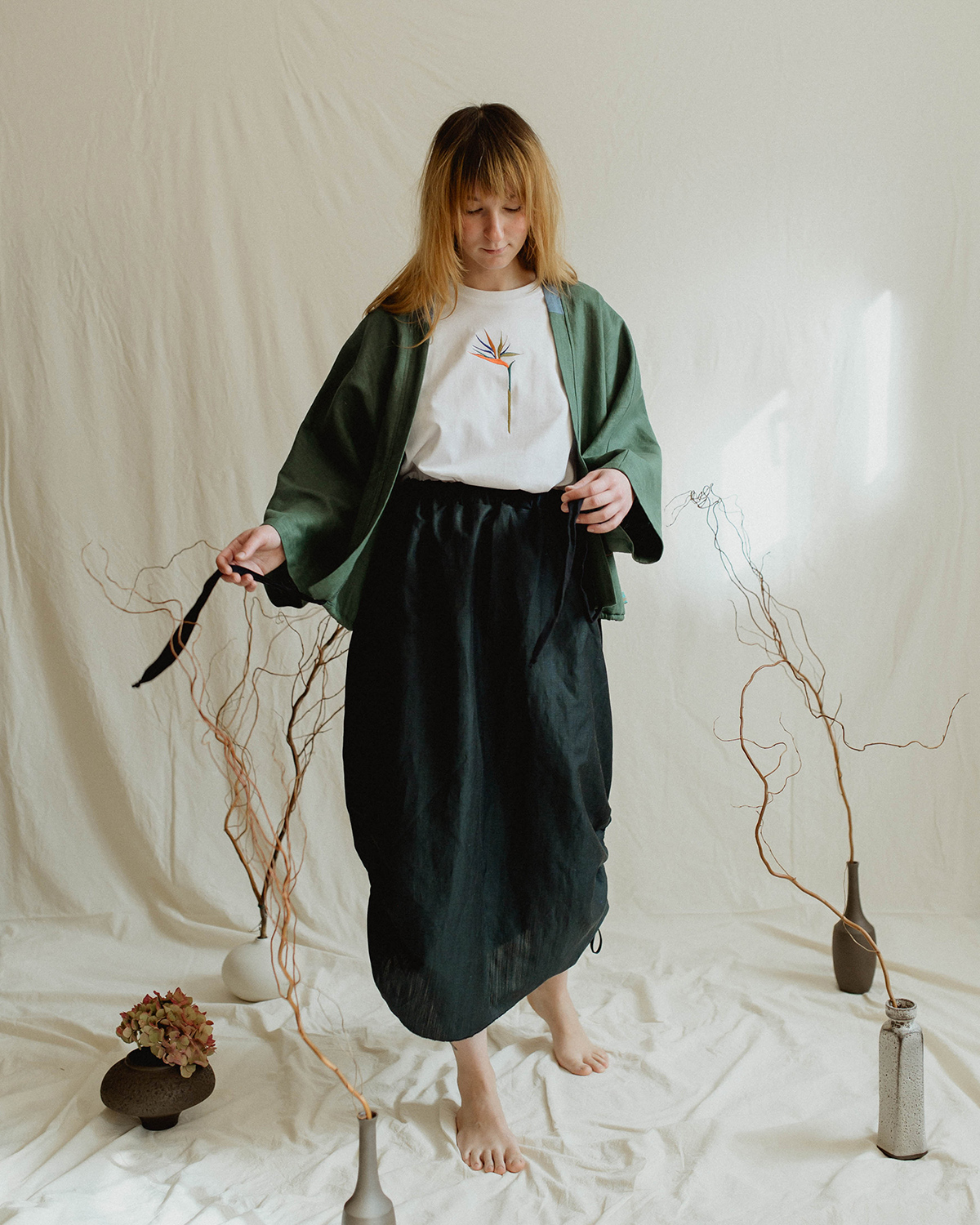 O piesă vestimentară albă, curată, cu broderii botanice care aduc un accent natural în garderobă. Tricourile sunt unisex și disponibile în două croiuri: crop top și clasic, ambele gândite să stea lejer pe corp.